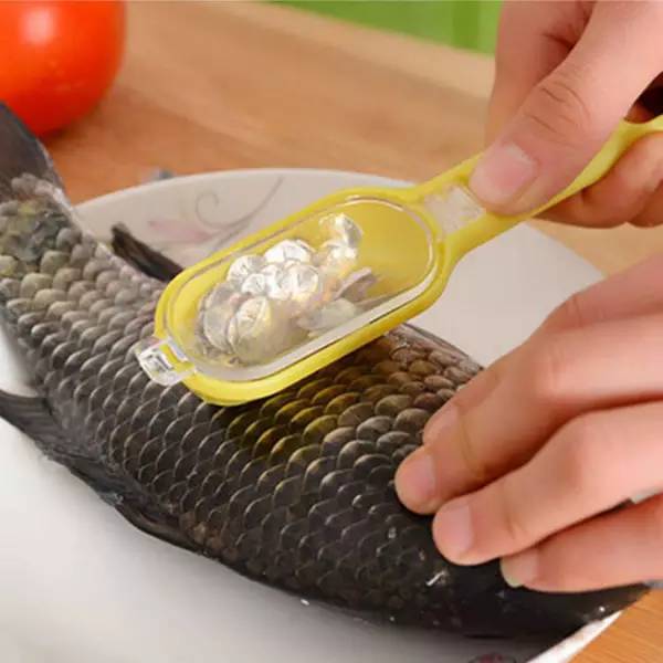 刮下的鱼鳞,先用冷水浸泡,再用热水洗去粘液,撇去浮沫。