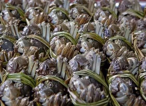 06 活海蟹装进保温箱,眼睁睁看见小贩们用不干胶带缠牢,回去打开,变成了一堆死蟹。这是小贩们在送货途中掉包了。