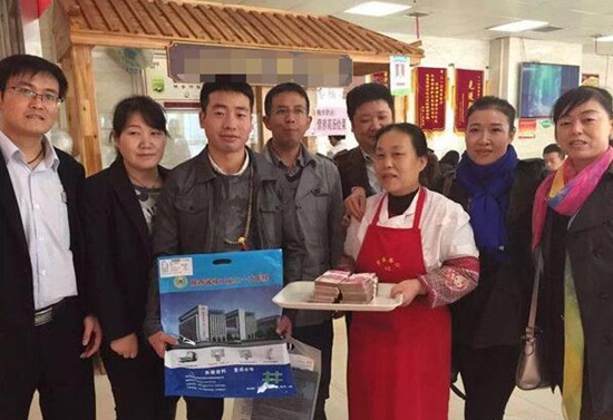 就在何先生吃完早饭离开后,医院餐厅部的郜大姐和往常一样收拾碗筷、打扫卫生,这时她发现了何先生落在椅子上的浅蓝色背包,“包装得鼓鼓囊囊的,一想就是客人落下的,所以,也没打开,第一时间交给了吧台。”郜大姐说,每天来餐厅就餐人不少,总有一些粗心的市民会落下东西,所以, 捡到何先生的包时,她并不吃惊。