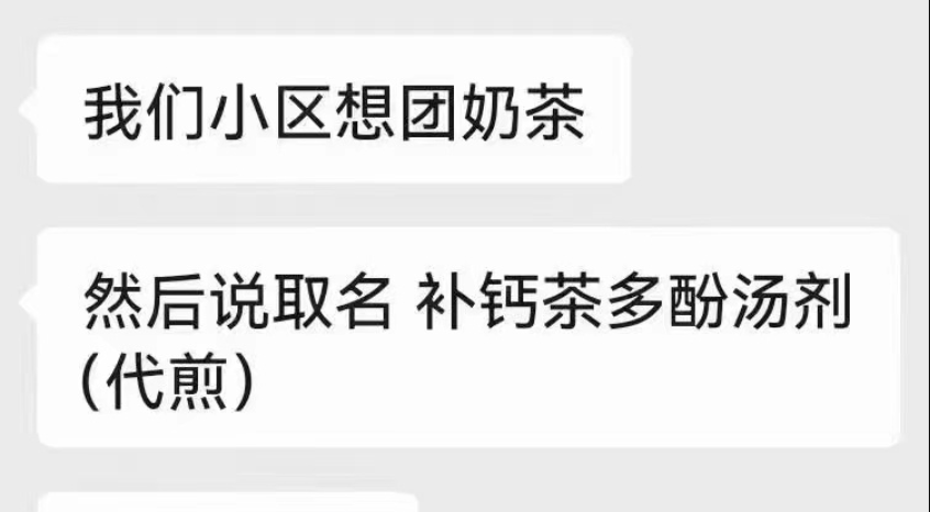 团购奶茶时,出现了诸如“补钙茶多酚汤剂”此类名字