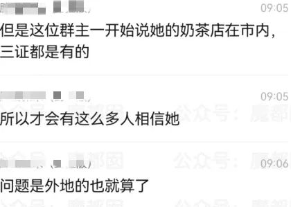 眼尖的网友发现,此次奶茶团购由一家理发店发起。店员伪装为消费者进群拉人,然后购买1點點。东窗事发后,他们放弃1點點,转向茶百道拓展业务。
