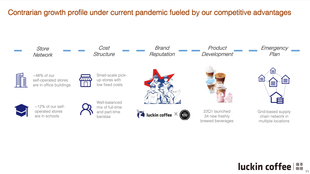 “自2020年以来,我们就一直迅速和果断地行动,以应对不断变化的环境。””瑞幸咖啡CFO Reinout Schakel今天在会上表示,例如,针对划定为中高风险地区的门店,公司会严格地采取一系列的措施应对。此外,瑞幸还简化了菜单和运营。在包括北京、上海等数个城市,瑞幸建立了临时的仓库,用应急方案保障供应链和运营的稳定。