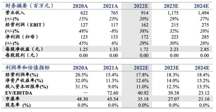 2022Q1营收1.86亿元、同比+14.17%,归母净利润3569.1万元、同比+21.9%,利润略超预期。