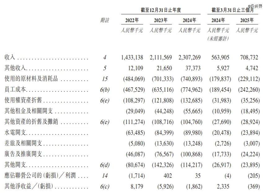 每年上千万顾客撑起了巴奴的营收。招股书显示,2022年、2023年及2024年期间,巴奴分别实现营收14.33亿元、21.12亿元、23.07亿元;今年第一季度营收从2024年同期的5.64亿元增加25.7%至7.09亿元。