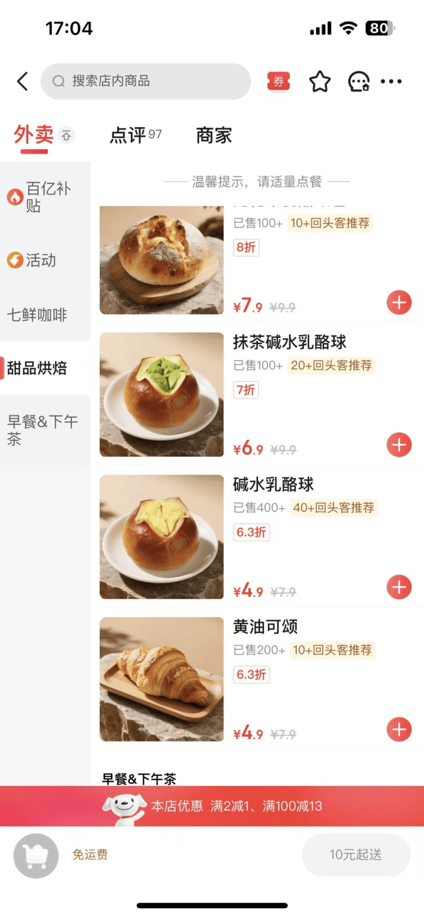 从产品看,七鲜咖啡的产品体系主要分:咖啡、甜品烘焙及早餐下午茶套餐,其中咖啡品类涵盖美式、拿铁等品类,分别有醇香美式、茉莉轻乳茶、轻椰茉莉冰茶、鲜奶拿铁、茉莉花香拿铁、生椰拿铁、椰青美式、双杯美式;甜品则有黄油提子司康、法式扁桃仁焦糖酥等热门烘焙面包产品。咖啡的定价仅为9.9元。但是在促销期间价格更低,只有5元到7元。比瑞幸和库迪更便宜。