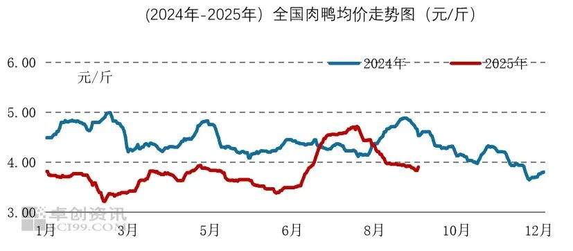 白羽肉鸡价格呈“跌-涨-稳”走势,肉鸭产业链价格趋势整体为降