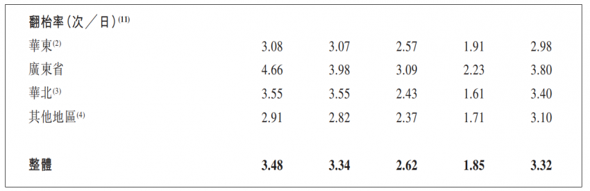 2018-2021上半年,捞王平均翻台率为3.1次/天、3.0次/天、2.5次/天、2.4次/天,从疫情开始的2020年至今,翻台率都在3次/天以下。