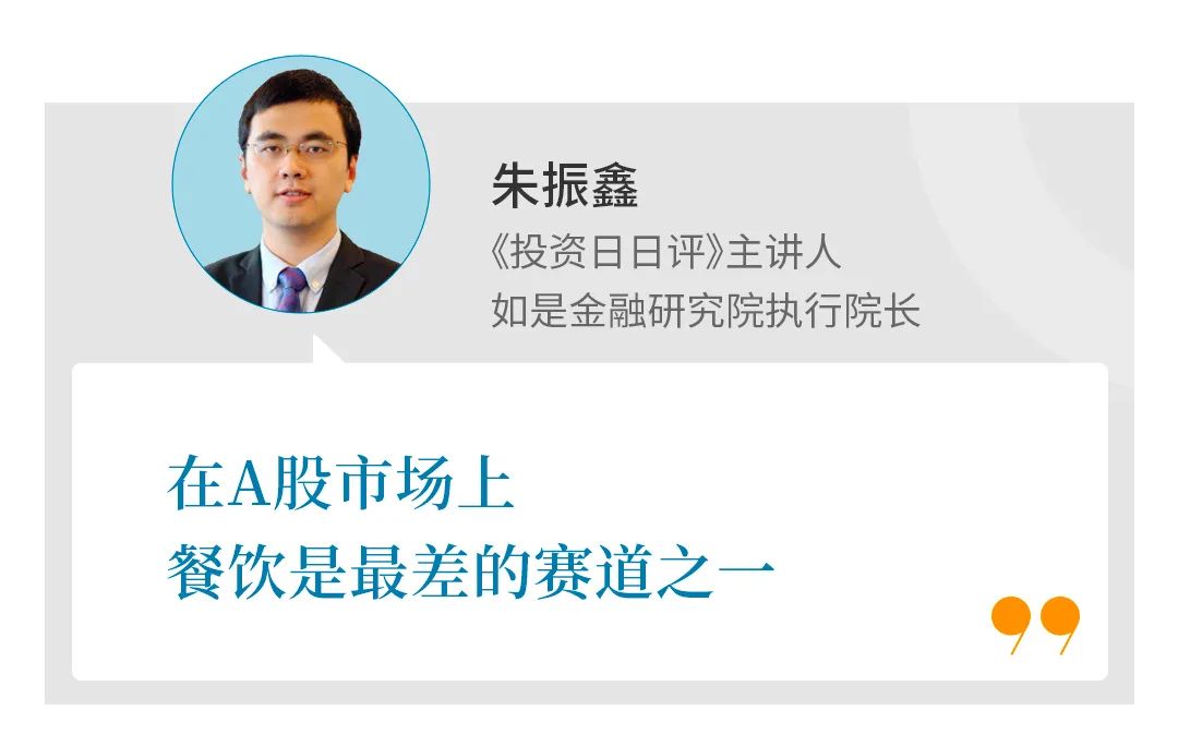 餐饮在A股是性价比特别低的一个板块,甚至可以说是最低。上市公司很少,而且基本都长期阴跌,核心问题还是商业模式难以标准化,运营比较重,又严重依赖人力成本,是一个典型的看着很热闹,但是不赚钱的行业。