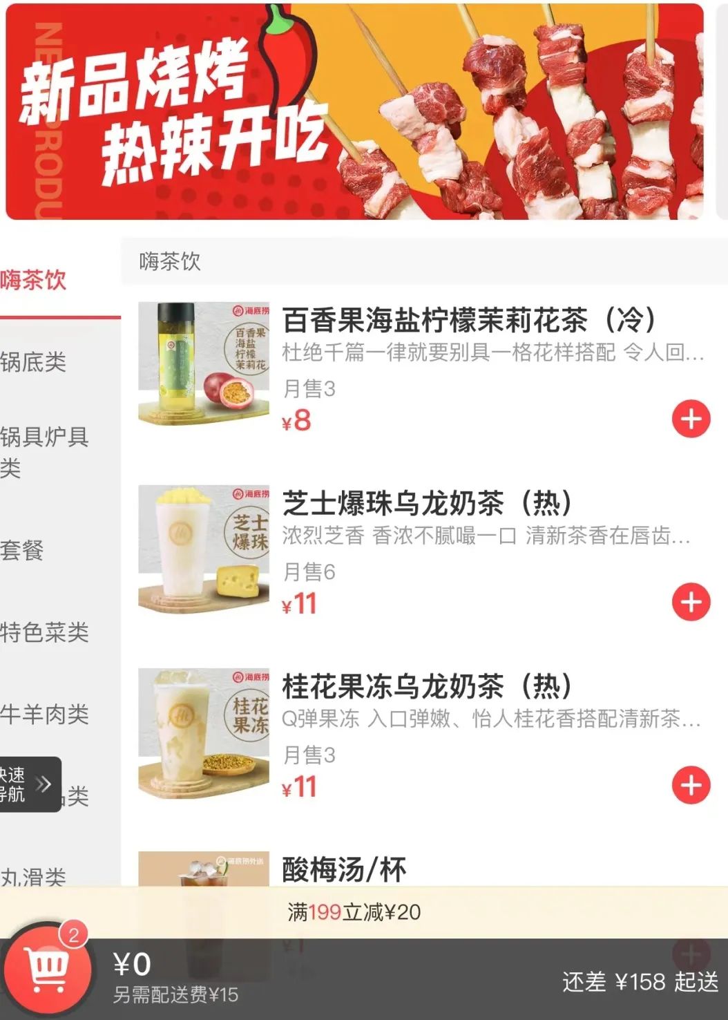 事实上,海底捞并不是第一次在外卖上动新的脑筋了。去年11月,海底捞就曾将茶饮加入外卖,消费者通过第三方外送平台搜索“海底捞外送茶饮”即可下单。小编注意到,此次趁烧烤食材外卖推出,海底捞也同时推出了“嗨茶饮”产品。